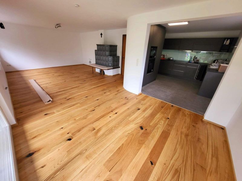 Entsprechend der verwendeten Holzart bietet ein Parkettboden eine große Auswahl an Farbtönen. Je nach Astigkeit kann er ruhig oder lebhaft wirken. Die Verlegung ist etwas aufwändiger und kann durch ein Klicksystem oder als vollverklebter Boden erfolgen. Je nach Dicke der sogenannten Nutzschicht kann der Boden abgeschliffen und neu geölt oder versiegelt werden, um immer wieder wie neu zu erstrahlen. Bei beiden Bodenarten empfehlen wir die Verlegung durch einen Fachmann, um Aufwölbungen oder Fugenrisse auszuschließen, damit Sie für viele Jahre Freude daran haben.